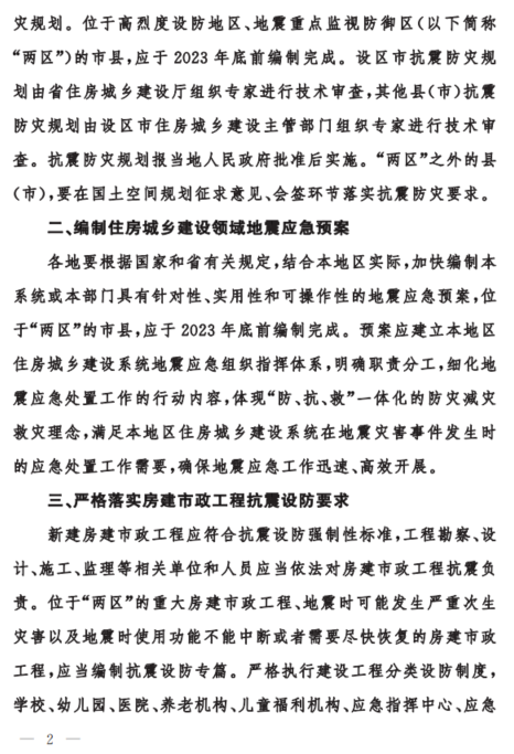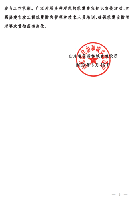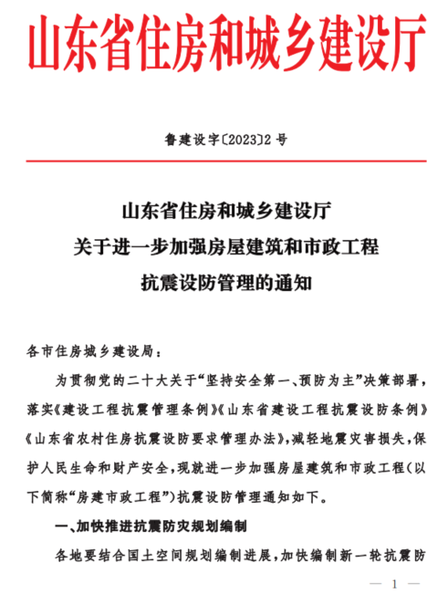 《關(guān)于進(jìn)一步加強(qiáng)房屋建筑和市政工程抗震設(shè)防管理的通知》(魯建設(shè)字【2023】2 號(hào)):